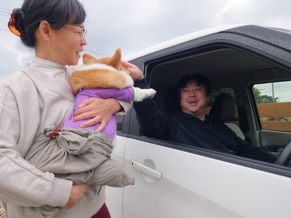 では雨の中荷物車に詰め込んだら僕らも濡れながら、最後にタプーちゃんを・・・
