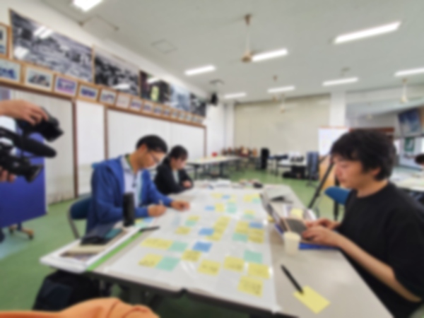 そんな作業がひと段落したら、ちょっと行って来ます!ってことでテクテク歩いて学び舎に向かい、ヒロユキさんここ座って座って!って 見学に来ただけなんですけど・・・って戸惑いつつもグループワークに参加です。