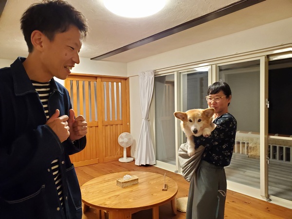 と思ったら9時を過ぎようやく 遅くなっちゃって!って登場本日最後のゲストさんは、こちらも夕方急遽プキの家に来ることとなったショウイチさん。日中はありがとうございました!ってみんな喜んでましたよと、いやいや僕の方こそ良い体験で!って言葉を交わし迎えたら、またいつもの流れだねってことでタプーちゃんに、タプーちゃんに・・・