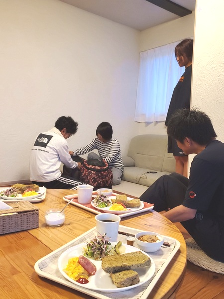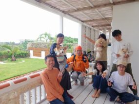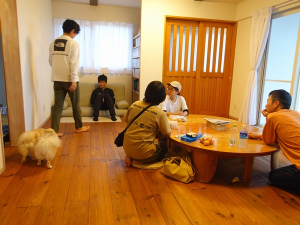 強引に詰め込んだらこれでOKと、ようやくみんな揃って手を合わせます。シュウヘイくんとミユちゃん今日が最終日だしシュウヘイくんは自転車だし、車に乗せてくよ!ってタカシくんだけどカッパ着て走るからいいよって。まあ思ったより降水量少ないみたいだし気をつけて走ればって話から、雨でも時間潰せる場所ってある!?って話でシーサー作りとか映画館の話になったり ズとヅとどっちだ!?って話になったり やっぱりドンキだな!ってドンキ好きさんの話になったりワイワイと。