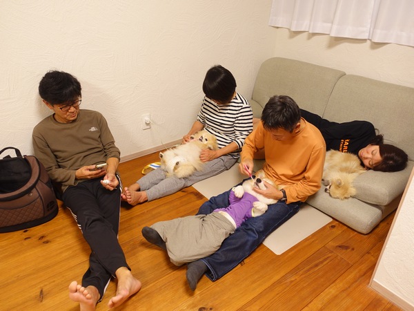 そこから二次会は なになに!?って興味津々思わず老眼鏡掛けてしっかり見ちゃうボトルが登場 スゴイスゴイ!ってテンション高く、そんな流れでプキの家を語っては、こんなに宮古に通い続けるのもプキの家があるから!って縁や繋がり語ってます。そんな傍らではタプーちゃんも何かを語っておられまして、そうだね磨いてほしいんだねってことでソファの前に連れてくと、連日寝相が違うな!ってノアちゃん笑いながら・・・