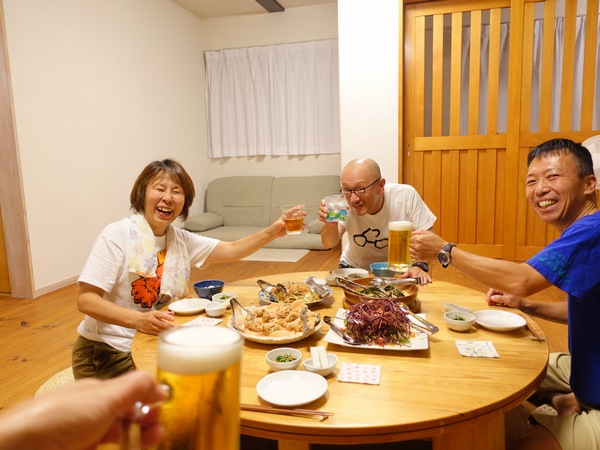 そしてお目覚めのカズヒロさんエミリさんとおはようの声掛け合ったら、起きれませんでした!って、でしょうね!って笑っていただきますと手を合わせます。そんな朝食タイムは パン手作りでしたね!って美味しいねって食べながら、それにしても今日は最高だ!って外の景色眺めたり、最高だけど日焼けに注意で!って、僕焼きたいんですよね!って怖い怖いって笑ったり。お次は 今日は新聞お休みでね!って島の新聞事情を語ったり、田舎の集落放送の話で ウチも実家の方は!って話で楽しんだり、このヨーグルト美味しいね!ってところから、ヨーグルト作りやマンゴーの話でワイワイと。