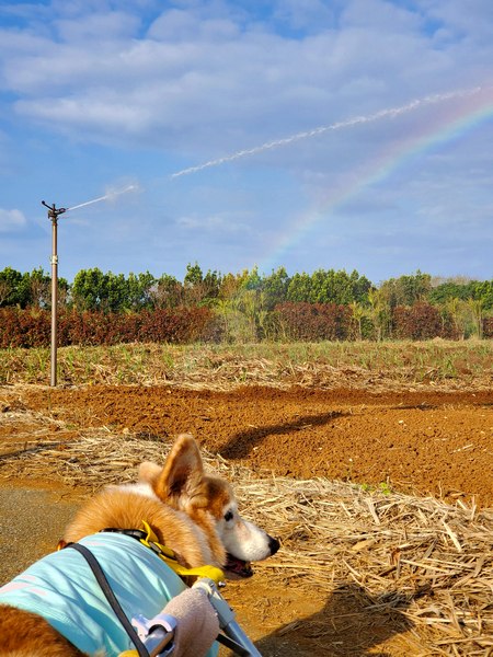 そんなお散歩はまさかの虹が出ておりまして、でも今日は晴れだし・・・
