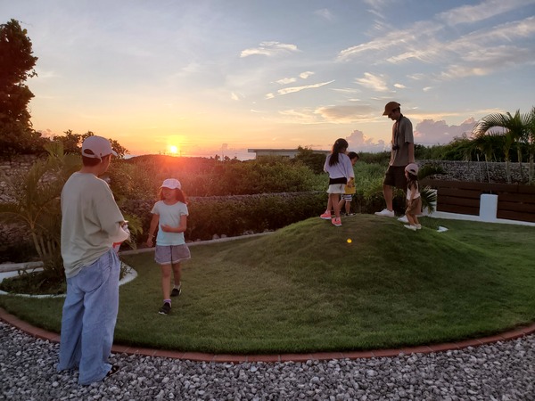 みんな仲良くプキビーチで楽しんで来たら、帰って来てまだまだ元気な子供達は、芝生のお山を・・・
