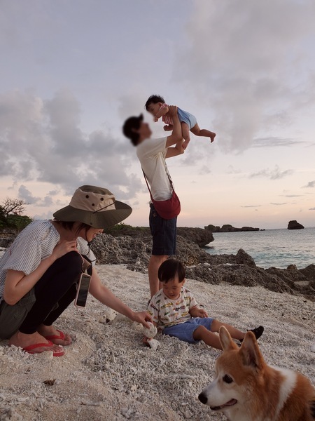 と思ったら 寝て~!って声が響いておりまして、料理の仕込みもひと段落ってタイミングでリビングに行くと バナオだけ寝てるんだ!って寝て欲しい子が寝てくれない状態で。なので隣に座ってバナアちゃん抱っこして椅子になっては遊んだり、誰がオッチャンやねん!ってバナタくんと遊んだり、無駄にお部屋の鍵で遊ぶから クマさん頭凹んでる!ってビビらせ優しくしてもらったり。そんなこんなでお散歩タイムになったら 初めて見た!って車椅子タプーちゃんにバナナさん大喜びだったり、バナアちゃんがハイハイでタプーちゃん追い掛けたり おはようございます!ってバナオも登場行ってらっしゃいと見送ります。そんなお散歩は、残念ながら雲に隠れて夕日は見れなかったけど・・・