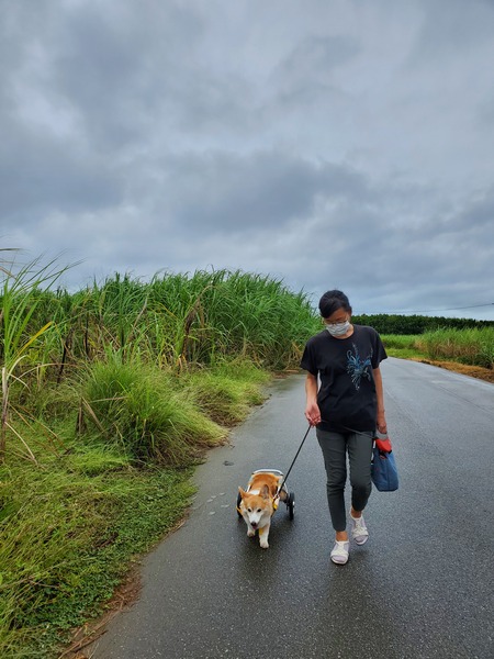 だけどもどこかでタプーちゃんのお散歩行ってあげねばと雨雲レーダーにアンテナ張ってたのでね、今だね!ってことで雨上がりの道を二人と一匹テクテクと。