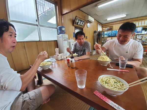 では早くもお昼の時間、ランチは島のローカル食堂にしますかと、ローカル過ぎて ここ駐車場ですか!?って入る前からローカル感。