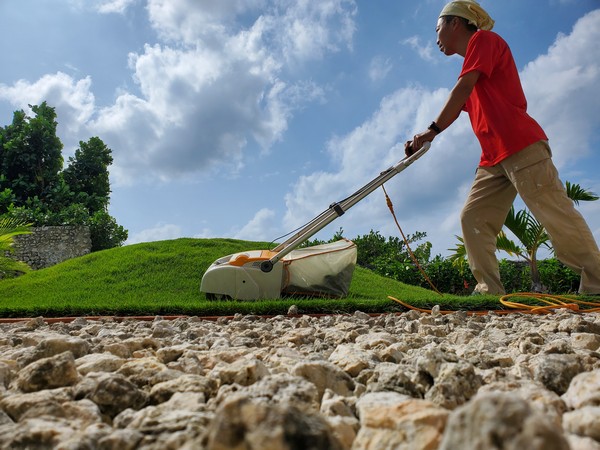 そこからはひとまずお仕事進めて行って、今朝もそんな話をしてたんだけど、芝生が伸びて来てるし天気も曇りと風の芝刈り日和だし、やりますかって着替えてスタートしたら・・・