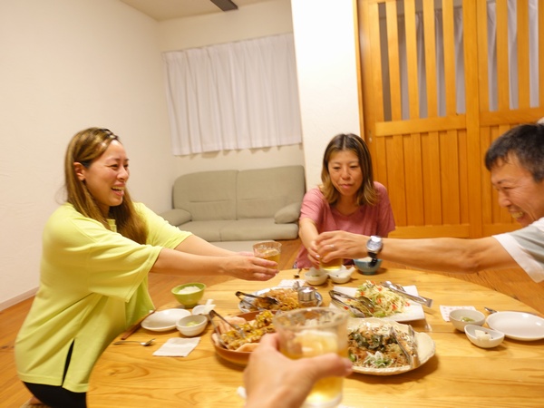 そして 美味そうだ!って嬉しそうに手を合わせたら、これなんのパンですか!?ってのでビックリしつつ、ツアーはどうなったの!?ってなんとか無事行けそうって話だったり 8時集合とか無理に決まってるじゃん!って無茶振りな話になったり、今日の予定を相談したりして。そして朝からサトシさんとの飲み過ぎエピソードだったり、ハンバーガーとかタコスとか沖縄食文化と宮古島ってな話になったりワイワイやったら、せっかくの晴れだしガッツリ楽しまなきゃねってことでごちそうさまと手を合わせます。