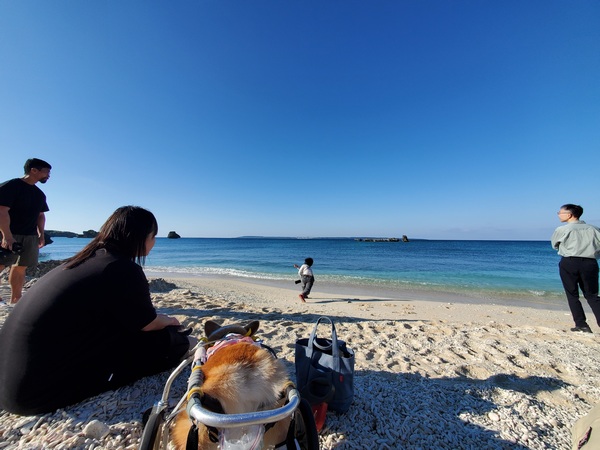 なので 投げ方下手くそになってるぞ!って声掛け頑張るも、私が拾った石が・・・ってお姉ちゃん、良さげな石を提供するも無駄に消費されてく姿を嘆いてます。そこからものんびりとおしゃべりしては遠くで魚釣りしてる姿眺めたり、八重干瀬に行く船だね!ってシュノーケルツアーの話から船酔いの話でワイワイやったり、ミナトがもうちょっと大きくならないと連れて行けないねって話から ヒロユキさん預かってよ!って、1分5千円だけどいい!?ってな返しで笑ったり。