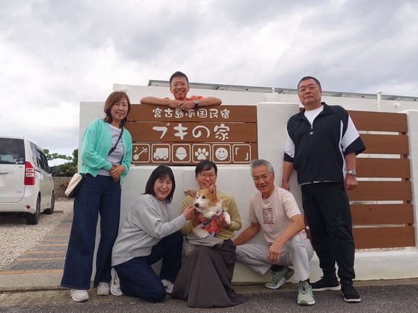 では準備万端整ったら最後にみんなで写真撮りますかって玄関出ると、曇って来たね!?って知らぬ間にどんよりとした空になってます。なってますが気にせず看板囲んだら、タプーちゃんを中心に・・・