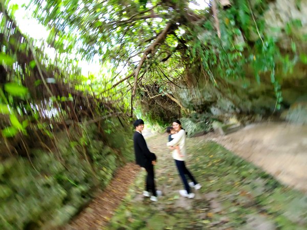 お次はジャングルチックな道を突き進み、これは貴重な!って天然記念物のキンバトが僕らのすぐ目の前でのんびり歩いてるって姿あって、のんきだなあって言いつつゆっくり眺めて大満足。その先は これに会いに来たんだ!って巨大シリーズ第三弾を笑いながらマジマジ眺めたり、すぐ隣の入り江の景色を楽しんだり。