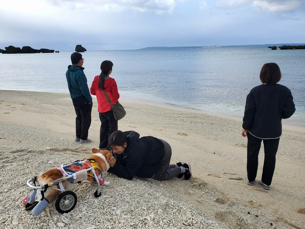 というわけで張り切って出発 暖かい!って、晴れてる!って晴れてないけど晴れてると、そして向かう先にワンコ発見勢い良く歩くタプーちゃん先頭に、ご近所さんと声掛け合いながらプキビーチにやって来ましたよ。だけどそんなビーチは どうしたどうした!?ってビーチはいいけどタプーちゃん、靴下どこかで落として来たねって帰りに探すとしましょうか。昨日この天気やったら!って空は明るいし海も穏やかだし、そんな海眺めるみんなと・・・