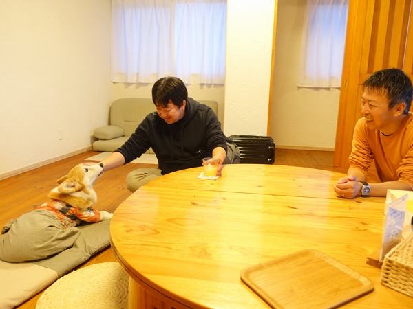 それにしても1年早いな!って早速そんな話になったり 人間ドックでさあ!って早速そんな話になったりしてね、そして これお土産!って色々あって2つになったよってありがとう。そこからお部屋の案内は そうだこれが初登場の!って試しにひとつ導入してみた新しい布団をぜひススムさんで試してもらおうと、早速敷いたら 転がってみてよ!ってゴロンとやっては これいいんじゃない!ってススムさんがOKならほぼほぼみんなOKなので良かったと、また明日感想聞かせてねってこととなりまして。