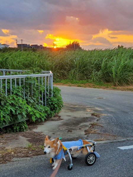 ちょうどタプーちゃんが夕方のお散歩に行ってる間、夕日が沈んでいくのを眺めつつ・・・