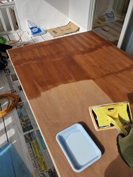 ベニヤは吸い込むなあと思いながら、1回目の塗りは・・・