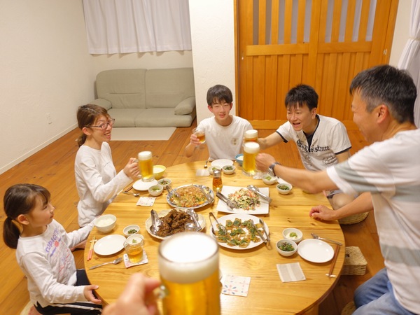 うま~い!って一年で一番仕事が忙しい時期を乗り越えたアッくん至福の表情でね、一方ソウマくんは さっきからお腹の調子が!ってまさかのって、さらにアオイちゃんはパクッとご飯頬張った直後パチンとやられてハッとして。そんな姿を笑いながらいただきますしたら、まずはこれからどうぞな一品頬張り 美味しい!って、熱々だ!ってみんな揃っていい笑顔。そこからは ヒロユキさんこれ何!?って初食材だったり、これは旨辛だ!ってのに興味津々ソウマくん、震度でいうと!?って 6かな!とかそんな親子の会話だったり 美味しいしか分からない!って不思議メニューで楽しんだりと。