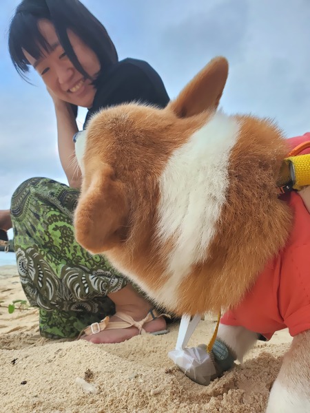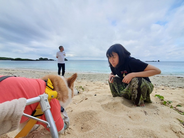 ごちそうさましたらお散歩行けるねって笑顔で準備して、車椅子装着張り切って出発だ。そんなお散歩は 凄いね手作りなの!?ってしっかり歩けてる姿に感心したかと思ったら、タプーちゃんなんなのよ!?って妙に幅寄せして来る姿に戸惑ったり笑ったり。そしてこの2年間で変わった景色を眺めつつ それは有り得ないでしょ!ってビックリな話にビックリしたりテクテクと。今朝はなんだかプキビーチに車がいっぱい停まってるし隣のビーチに向かったら、昨日と全然違うよ!って・・・