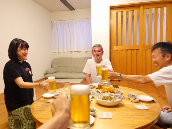 そんなこんなで日は暮れ夜が来て、料理が完成 出来ましたよ~!って声掛けたらテレビのスイッチ切るケイイチさんと、ハラちゃんはまだ余韻の景色楽しんでるので声掛け集合です。