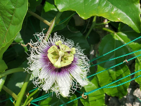 念願のパッションフルーツの花がひとつだけ、小さくとも大いなる一歩だねって、咲いた咲いた!ってメグミさんにも報告、立派な実がつくよう上手に受粉してくださいな。