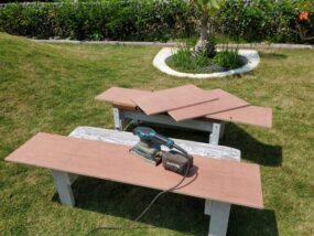 こちらもまた先日の冷凍庫台と一緒でそんなに仕上がりのクオリティ求めないヤツなのでね、皆さんには直接関係ないところで使うヤツなのでね、軽くサンダー掛けしたら拭き上げ木の粉を取りますよ。