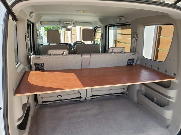 お次は長い方の棚板2枚を手にしてエブリィさんに向かったら、乗せるだけの簡単仕様ではありますが・・・