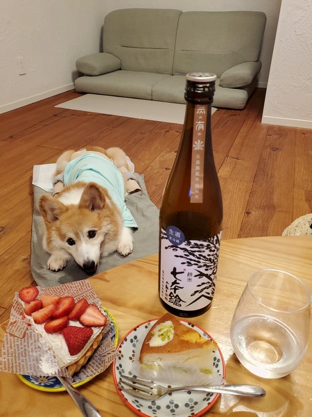 というわけでプチスペシャルなディナーで乾杯からスタートしたら、さっきの買い物で なんでケーキを!?ってメグミさんだし だって結婚記念日のお祝いも兼ねてってことだったし!というわけで、先日マミちゃんに戴いた日本酒とケーキで・・・