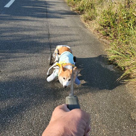 また歩かないお散歩となってますが いいぞいいぞ!ってアレが固くなって来たねって喜んでは、お腹の調子も体調も上がって来るヤツかなと、足に力入って歩けるようになるかもと期待しつつ、ひとまず今朝のところは引っ張りますよ。