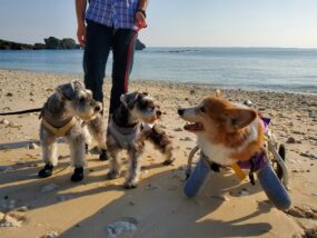 そしてレンタカーが到着 お久しぶりです!って登場は、1年半ぶりのヒロシさんヒロコさんとシュナウザーのコウちゃんに初めましての新入りカサネちゃん。タプーちゃんが気になるか、ワンワンキャンキャンカサネちゃんだけど、お部屋に入ってハウスから出たら、突然無言で・・・