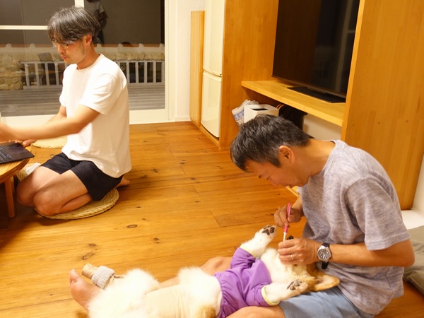ではそろそろいい時間、さっきからタプーちゃんの視線感じるけど違うんだって、いや違わない!って今朝先生にもう歯磨きしても大丈夫って言われたのでね、1週間ぶりの・・・