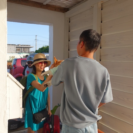 では着替えてレンタル手渡したらお勧めしたビーチに行って来ますって出発なので、そうだアレを進呈しよう!ってちょっと嬉しいアイテム手渡したら、張り切って出発見送ります。