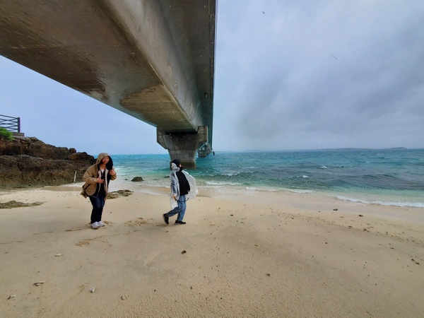 なのでこれはもうカロリー消費するしかあるまいと、まだ4千歩くらい!ってことなので、止みそうもない雨ですがなんとか体動かしますか。そんなわけでやって来たのは本日2つ目橋の下。満潮だと下に行けないんだ!って感じになってるけれど、岩場で遊んだり荒波に水切りしては スゴイスゴイ!って楽しんだり、ちょっとは体動かせました。そんな流れでお次は気になってた御嶽を外から覗いてみたり、キレイやけど風凄い~!ってビュービュー絶景スポット楽しんだり、これを行けと!?って洞穴覗いてみたりして。その先には頑張ったご褒美が・・・