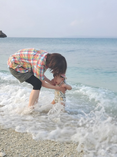 そしてバナオに抱っこのバナアちゃん、バナナさんにバトンタッチしたら人生初のアレをやりますかって、大泣きするか喜ぶかどっちやろ!?ってドキドキワクワクで波打ち際に向かいます。