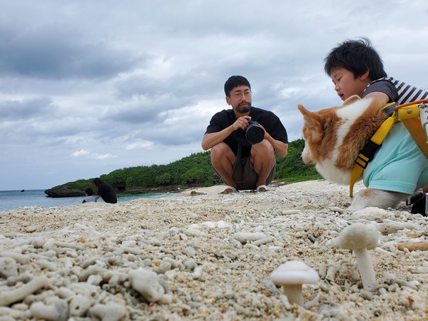 そんなビーチでは早速サンダル脱いで足チャプ楽しむミナトくんだったり、ほらキノコ!ってサンゴでキノコ作って嬉しそうに見せてくれるナオトくんだったりしてるから、僕も真似して2つ並べて・・・
