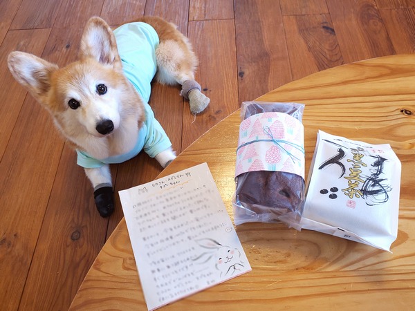 それからしばらくして キタキタ~!って待ってましたよのお届け物が届いたら、箱開けニンマリ嬉しい笑顔が抑えられません。そんな嬉しいプレゼントはプキの家ファンマミちゃんから、先日はお婆ちゃんの詰め合わせセットだったんだけど、今回はこの時期恒例マミちゃんお手製丹波栗のパウンドケーキが届きました。