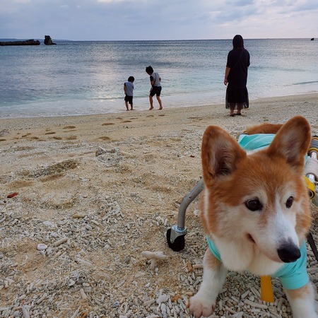 そんな中先に食べ終わった兄弟は仲良くデッキで遊んでいてね、なんだかんだで成長したなあって話で楽しんだら、みんな揃ってごちそうさま。ではタプーちゃんのお散歩行きますかって張り切って出発したら、まだ風強いな!ってビュービューの風に押されながらプキビーチにやって来ましたよ。