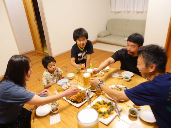 ではでは料理が完成出来ましたよの声に集まったり またこのタイミングか~!ってトイレにダッシュのナオトくんだし明日はもうちょい早めにねって。なので泡消えちゃうよってヒデ爺だし、ナオトくんが座った瞬間 カンパイ!って声掛け・・・
