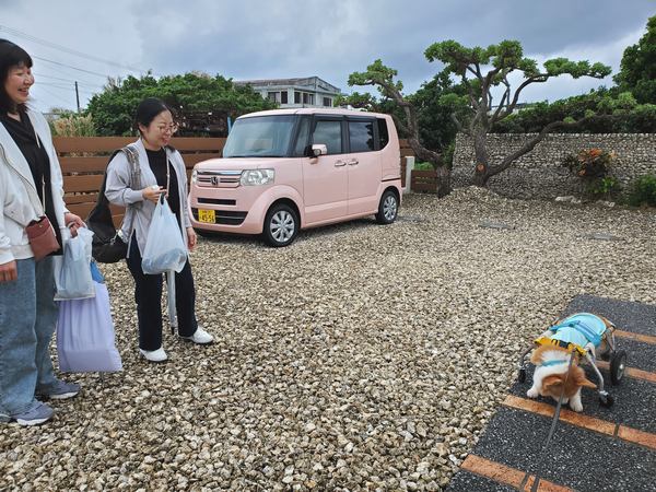 そんなわけでのんびりとおしゃべり楽しむ朝食タイムを過ごしたら、雨降ってないし今の内に出発した方がってことでバタバタ準備して、そしてタプーちゃん登場に おはよう~!って、そしてナデナデしては 癒される~!ってね。