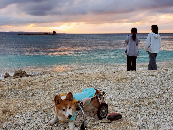 そして夕方帰って来たら やっと青い海見れました!って嬉しそうな報告聞いたら、お散歩行きますってことだし 雨の心配ないしいいなあ!って濡れながらダッシュで帰って来た今朝のお散歩語ったら、準備して出発するのを見送ります。そんなお散歩プキビーチでは、さすがにバッチリとはいかないまでも、思ったよりもいい感じの空に・・・