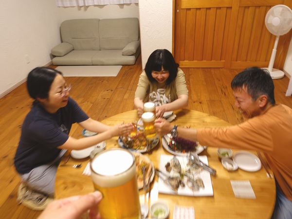 ではでは料理が完成 出来ましたよ~!の声に集まったら、今夜もワッとテンション上がってひとまず写真を撮ってから、それじゃあ晴れの宮古に!ってことで・・・