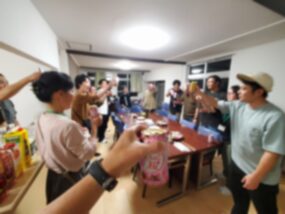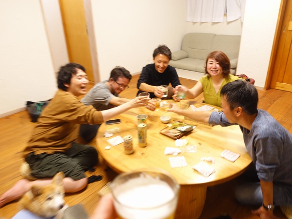最後のメンバーが総まとめのようなプレゼンするから 昨日の話と全然違うじゃん!ってトライアスロンどこ行ったってコメントで大笑いしたら、これにて本日のプログラムは終了です。それじゃあちょっとお先に!って ホントありがとうございました!ってことで一旦プキの家に帰ってあれこれ態勢整えたら、最後の夜の打ち上げにまたまた僕らも参戦です。なので真っ暗な夜道を差し入れのビール担いで歩いたら、こんな感じですか!って会場は空き家リフォームのお宅でね、キョロキョロ見渡しそしてメンバーみんな集まったら、今日は皆さんお疲れさまでした!ってことで・・・
