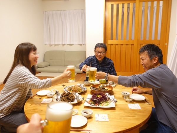 そして料理が完成 美味しそう~!って久々のプキご飯にテンションマックス良いことですよ。それでは久々の再会に!ってことで・・・