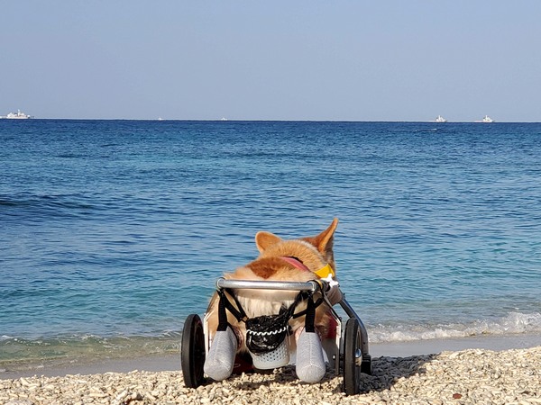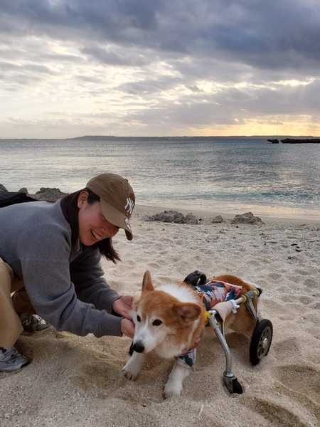 そんなお散歩チームが帰って来たからデッキに出て迎えたら、車椅子凄いですね!ってこれがなかったら今頃タプーちゃんどうなってるかって。それにしても寒くなって来たね!って言ったら薄着のヒトミちゃんに笑われちゃってますが、隣のメグミさんはしっかりダウン着込んでるっていうね。