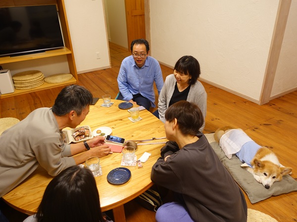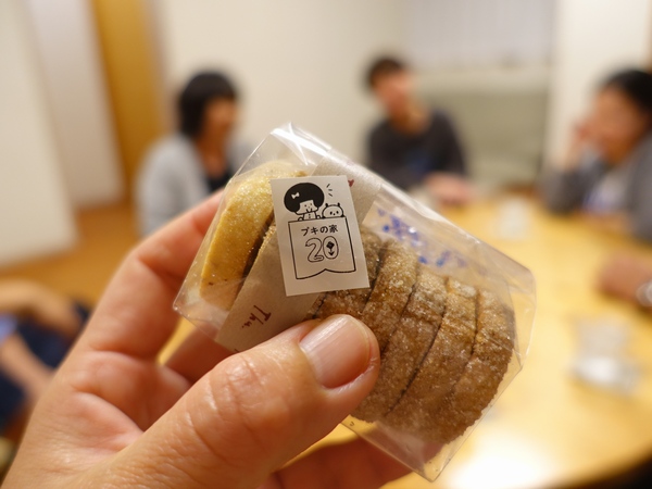 スゴイスゴイ!ってプロの出来栄えに歓声上がり、このデザインって!?って これはテプラ!ってこんなの作れるんだって進化してるんだねって話で盛り上がっては、ありがとうって食べたら 美味しい~!ってみんな笑顔になってます。そんなお菓子作りの話から、パン作りの話になっては 大阪に美味しいパン屋が!ってカズヨシくんの話になったり、みんなプキの家はどうやって見つけたの!?って話で盛り上がっては、私は来るまで知らされてなくて!ってサプライズ旅をミユキさんが語ったり。