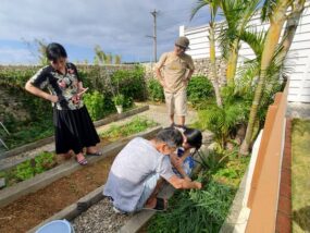 まずは手本を見せたら次どうぞって、もっと力入れて!って頑張って無事収穫、お次はメンタルさんも膝が腰がって言いながら頑張ったら、最後はヤスコさんが スコップ曲がってしもた!って大笑い。そこから薄皮剥くのは老眼にきつい作業だったり膝肩腰だったり、剥いたのバケツに入れてねって言うと なんでそっちよ!って剥いた薄皮入れてるボケボケナナハちゃんにまた大笑い。
