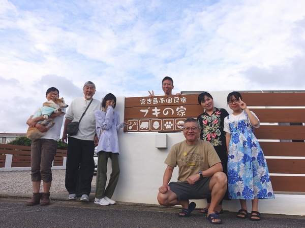 そこからはそれぞれ準備して行って、まずはミカちゃんミカオヤジさんが出発 みんなで写真を!ってことで外に出たら、看板囲んで・・・