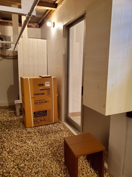 配達日の指定は配送業者にってことだったのが、ずっと港を出ないまま次の連絡でいきなり配達済みって いつ連絡しろと!?ってなことになりまして。まあ一番奥に置いてくれてたから良かったけど、デッキ前の屋根の下辺りだったらガッツリ雨と潮にやられて被災してたからね、なんとかギリギリセーフです。多分ね。