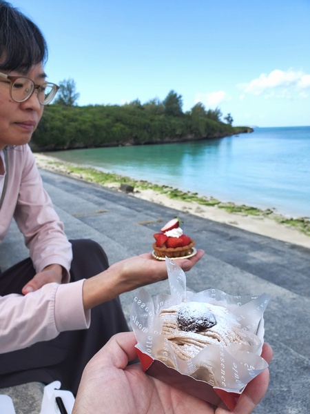僕らにとってはこれがランチということで、最近出来たらしき初めてのお店でゲットしましたよ。美味しそうだし良いことだけど、これフォークなしは難しくない!?って鼻と顎にもクリームつけながらモンブランとイチゴタルトを頬張ったら、満足満腹ごちそうさま。