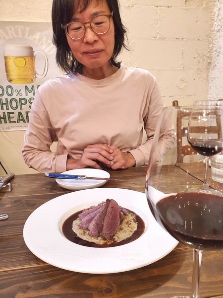 そこからもあれこれあって夕方またタプーちゃんのお散歩を今度は公園で楽しんだら、タプーちゃんには車で待っててもらってちょっと早めのディナーに向かいます。今夜は無事契約が済んだお祝いをってことで、こちらもランチに続き初めてのお店にやって来たら、ワインに合いそうなのと共に食を楽しみますか。