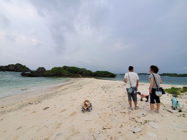 さてさて最後の朝もお散歩からスタートとなりまして、コウちゃん達と一緒に張り切って出発です。風強いですね!ってもう波音聞こえてるくらいだし、そして空もどんよりいつ降って来てもおかしくないなあと思いながらも、ちょっと足を延ばして隣の隣のビーチまで。